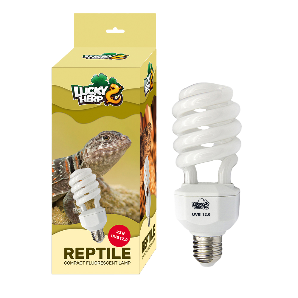 Компактная лампа "LuckyHerp UVB 12.0" — обладает чуть более усиленным излучением UVB и мощностью. При этом обладает более тёплой температурой света.